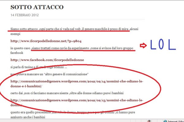 Non ci ho dormito la notte per sapere il motivo di tale gesto ,ma poi forse ho capito , nei loro commenti credevano che io fossi un tale Marco Beltrami che ,in effetti ,è intervenuto molto sul blog della Zanardo ,tanto da dire che ha stra-parlato .ma io sono Mauro Recher mi sembra che ci sia una bella differenza ,il quel post della Zanardo ,ci sono intervenuto anch’io ,ma con tanto di nome e cognome ,e per paura di fare una figura di “c….a”,hanno preferito cancellare il tutto ,loro diranno che non vale la pena per un blog come il mio ,blog di sfigati seguito da 3 gatti ecc ecc ,eppure il screenshot si sono presi la briga di farlo …