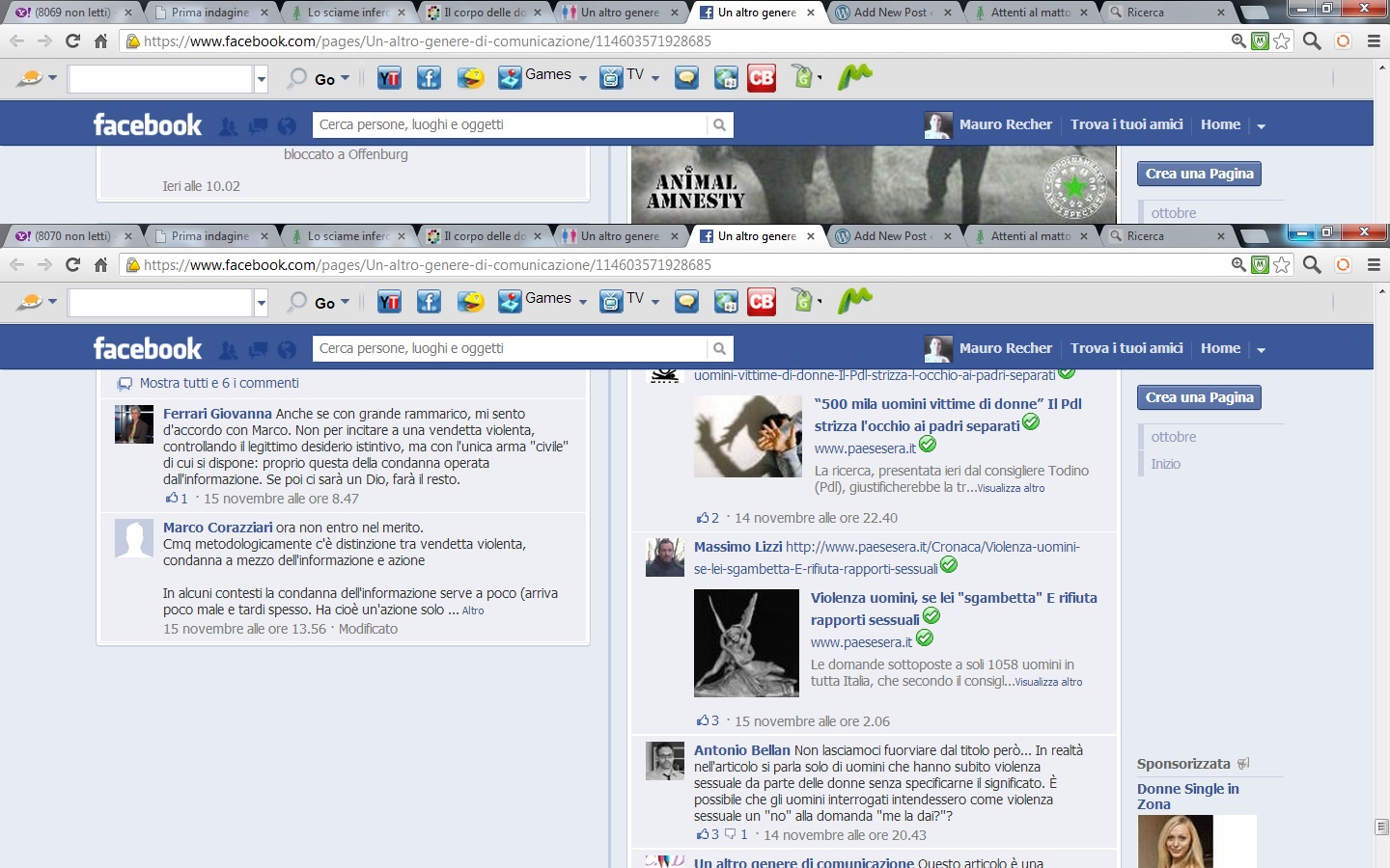 Nei nostri siti (vedi U.B.) le tesi che ci propinano i media vengono contestate e (a veder i commenti) le idee contrarie vengono accettate. Si chiedano loro, se con i loro “talebani antifemministi” “bastardi fascisti” “pedofili” etc. non siano le vere fasciste. Un po’ di autocritica?