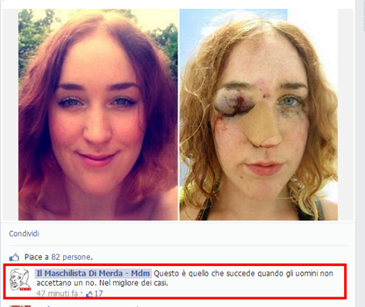 ma cosa vi spinge a difendere la categoria a prescindere? Cioè non è che se io leggo un articolo che parla di un piemontese che ha ammazzato di botte un animale, mettiamo, la prima cosa che commento, da piemontese, è: “ma non tutti i piemontesi!”. Ti rendi conto che davanti ad un volto tumefatto non provi compassione, paura, rabbia? Davanti ad una ragazza pestata ti viene in mente solo una roba superficiale e cretina e scontata come “sbagliamo tutti”. In pratica stai sminuendo le colpe dell’aggressore.