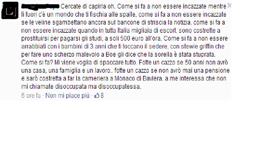 Da “il maschilista di merda” va beh che la pagina non meriterebbe di essere considerata ma che volete farci è più forte di me …