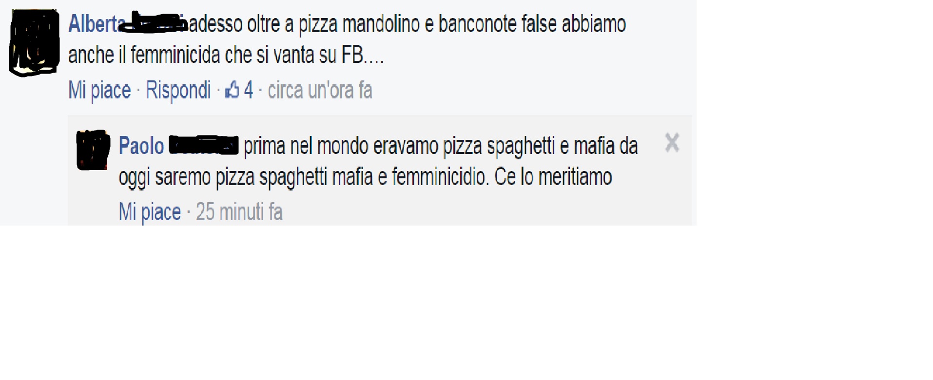In poche parole , il nostro paese ,oltre a quei luoghi comuni ,sarà ricordato anche per il femminicidio
