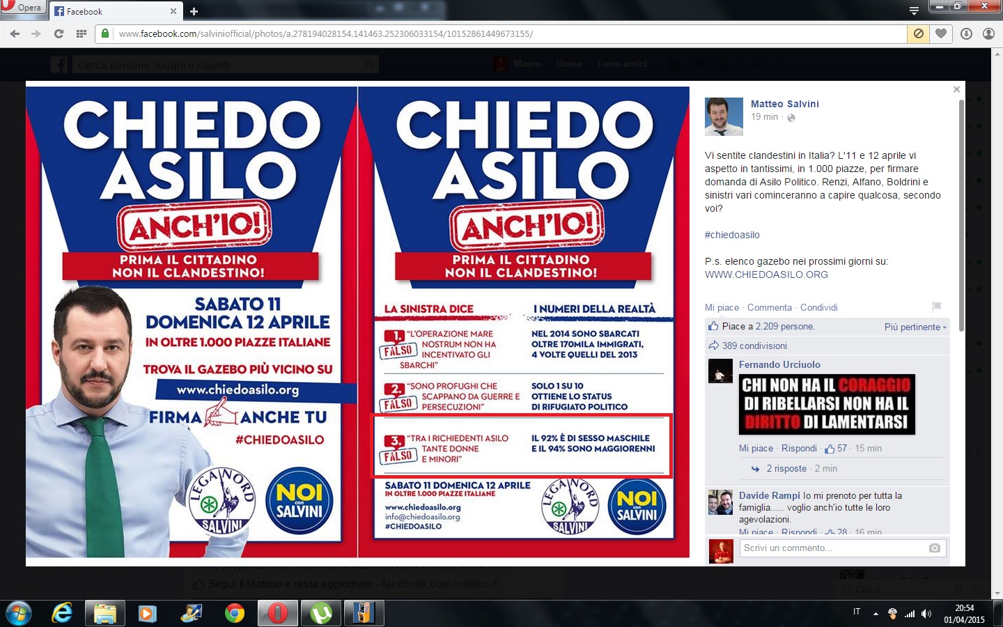 Cosa enuncia il punto 3 ” La sinistra dice che, a chiedere asilo sono in maggioranza donne e bambini ”