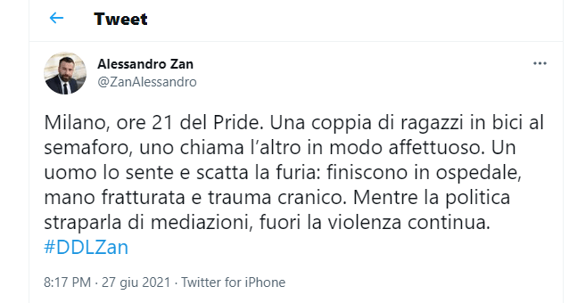 Uno dei motivi che sono non molto a favore del decreto Zan (ma ne parleremo in un altro momento)