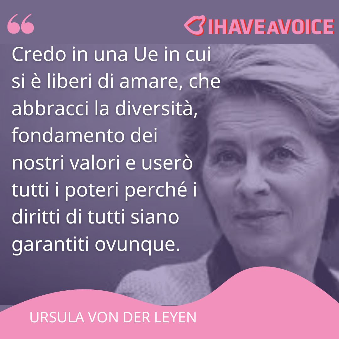 “L’ho già detto altre volte e voglio ripeterlo anche qui, io credo fortemente in una Ue in cui si è liberi di amare chi si vuole. Credo in una Ue che abbracci la diversità che è al fondamento dei nostri valori e userò tutti i poteri della Commissione per fare in modo che i diritti di tutti i cittadini europei siano garantiti per chiunque e ovunque”.