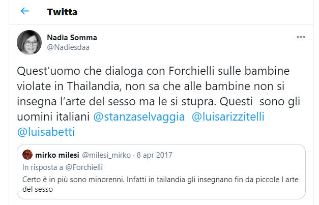 Gli uomini italiani (perchè cosi si scampa il pericolo dal razzismo) sono quelli che vanno a stuprare le ragazzine in Thailandia
