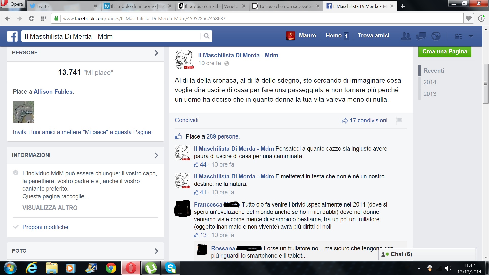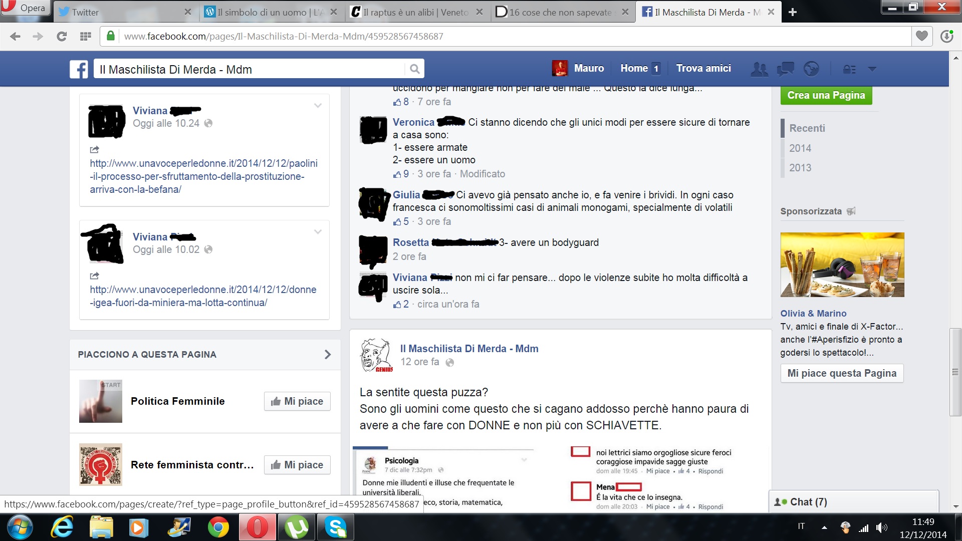 Ecco alcuni screenshot (ringrazio femminismo vs resto del mondo)