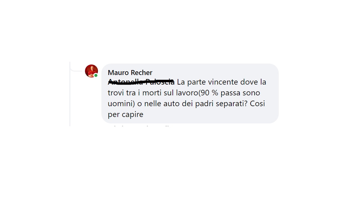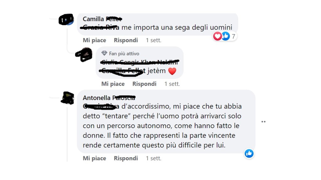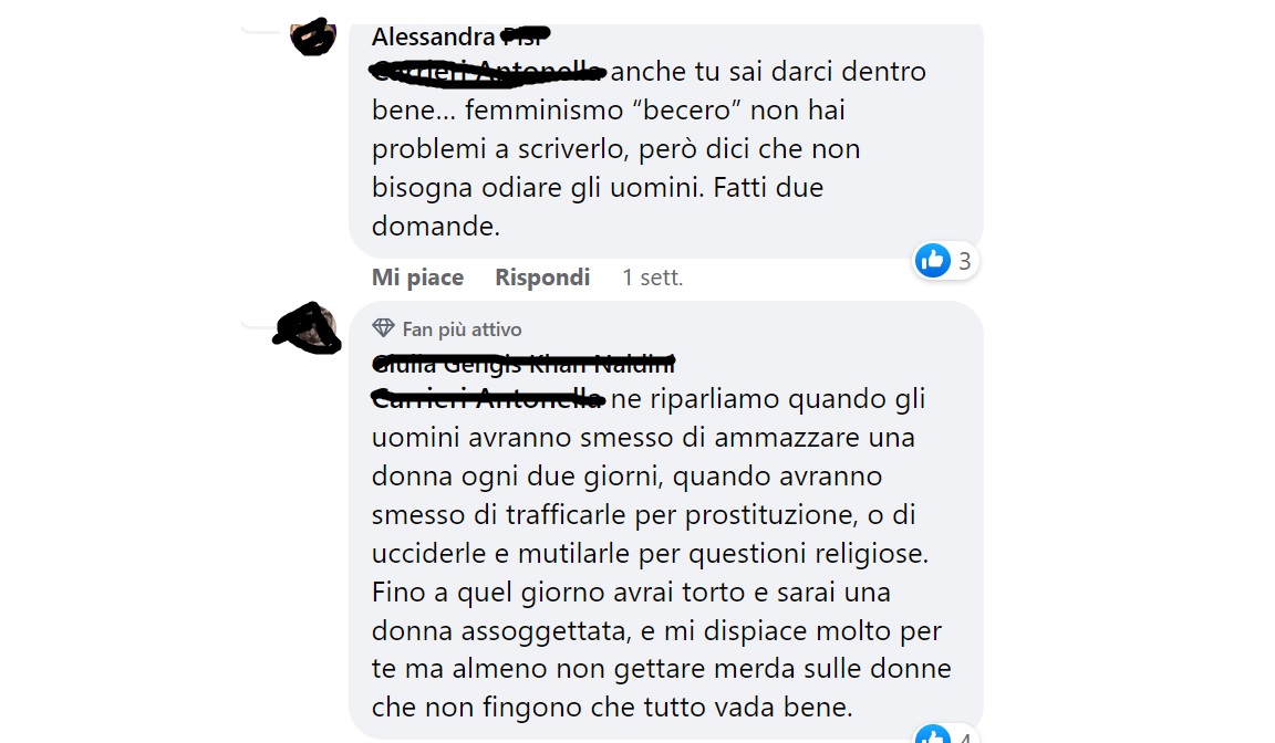 Questo è un commento che ho trovato sotto questo post del solito libretto femminista cioè questo