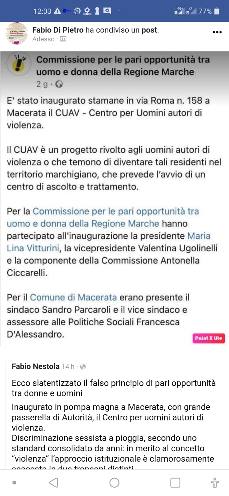 Ma dai ,cosa state pensando ,loro sono “l’intelligenzia” di sinistra, anti fasciste fino al midollo, ma guai a parlare di uomini in difficoltà, l’uomo (o meglio il maschio) è quella roba li